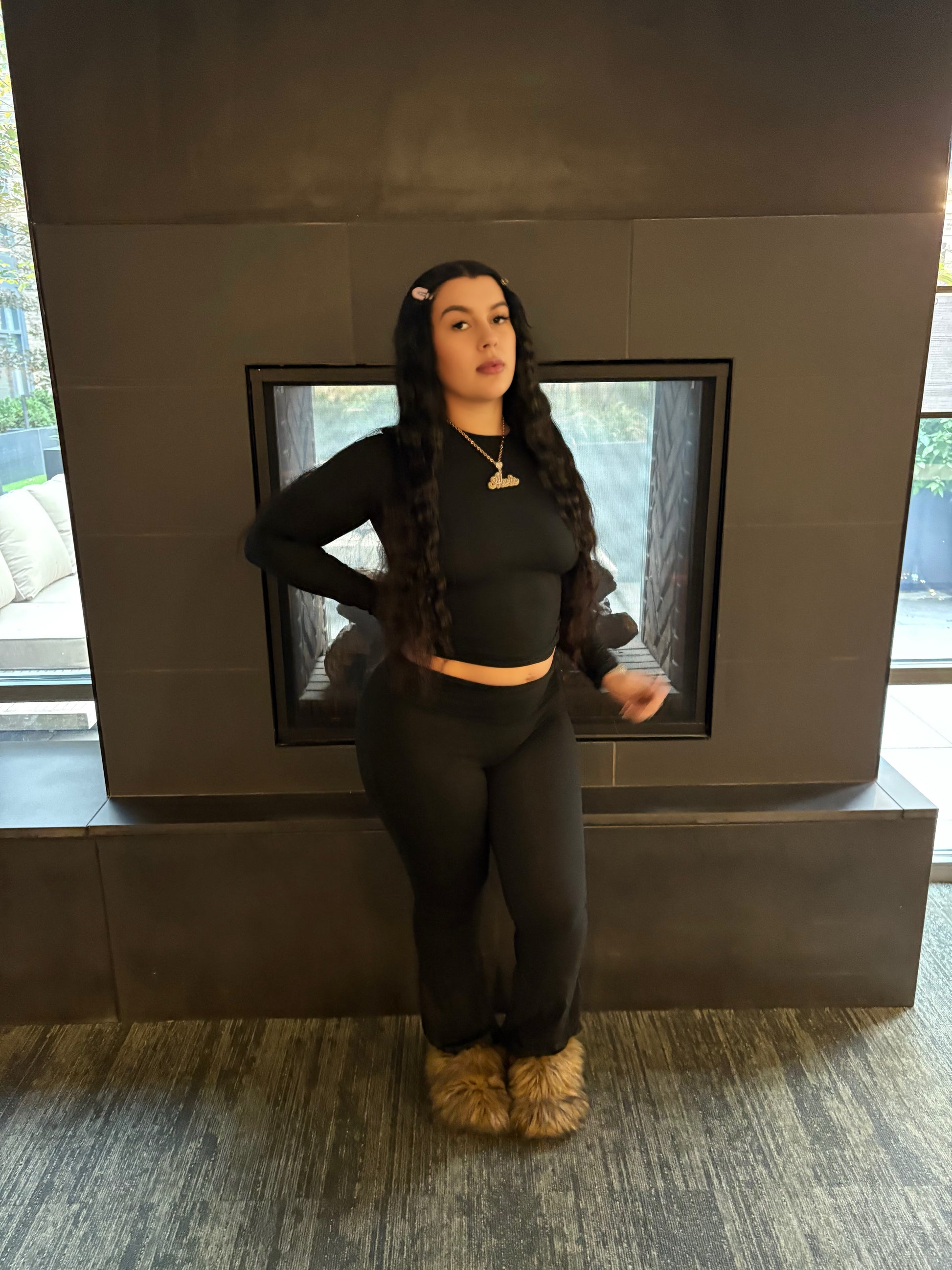 Embrace ultimate comfort and style with this sleek lounge set. Featuring a long-sleeve crop top and high-waisted pants, this two-piece is designed for a flattering, relaxed fit that’s perfect for both indoor relaxation and casual outings. The set is made from a soft, stretchy fabric that hugs in all the right places. Paired with fluffy slippers, it’s the ideal blend of cozy and chic for days when you want to feel effortlessly put together. The first model is wearing a large and weighs 175 pounds the second model is wearing a small and weighs 110 pounds. There is no refunds or exchanges.
